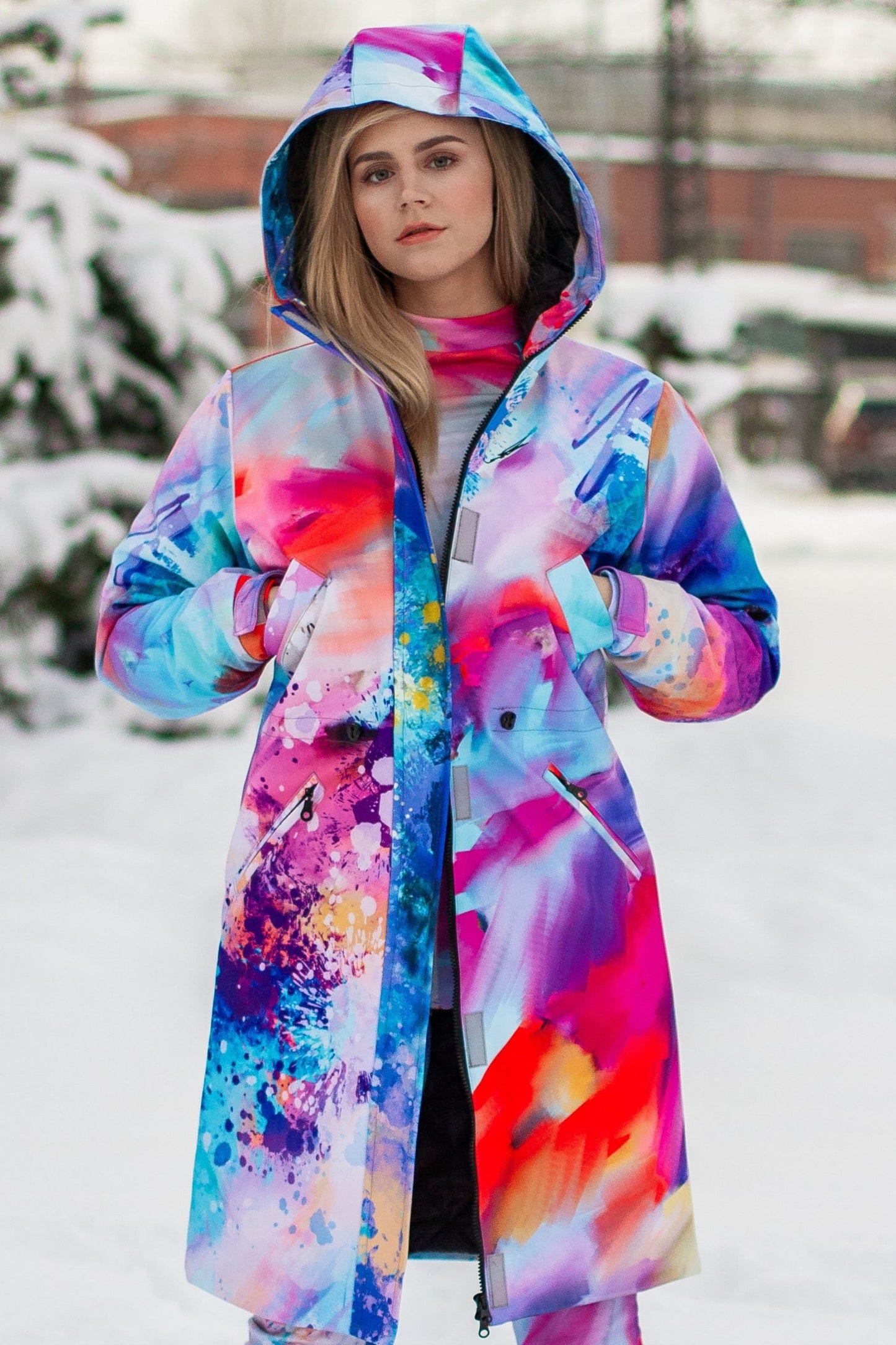 Bunter Mantel, Wintermantel, Damen Regenmantel, Frühlingsparka, Kapuzenparka, Oberbekleidung, Regenmantel, wasserdichter Parka Damen, Taschen, winddicht