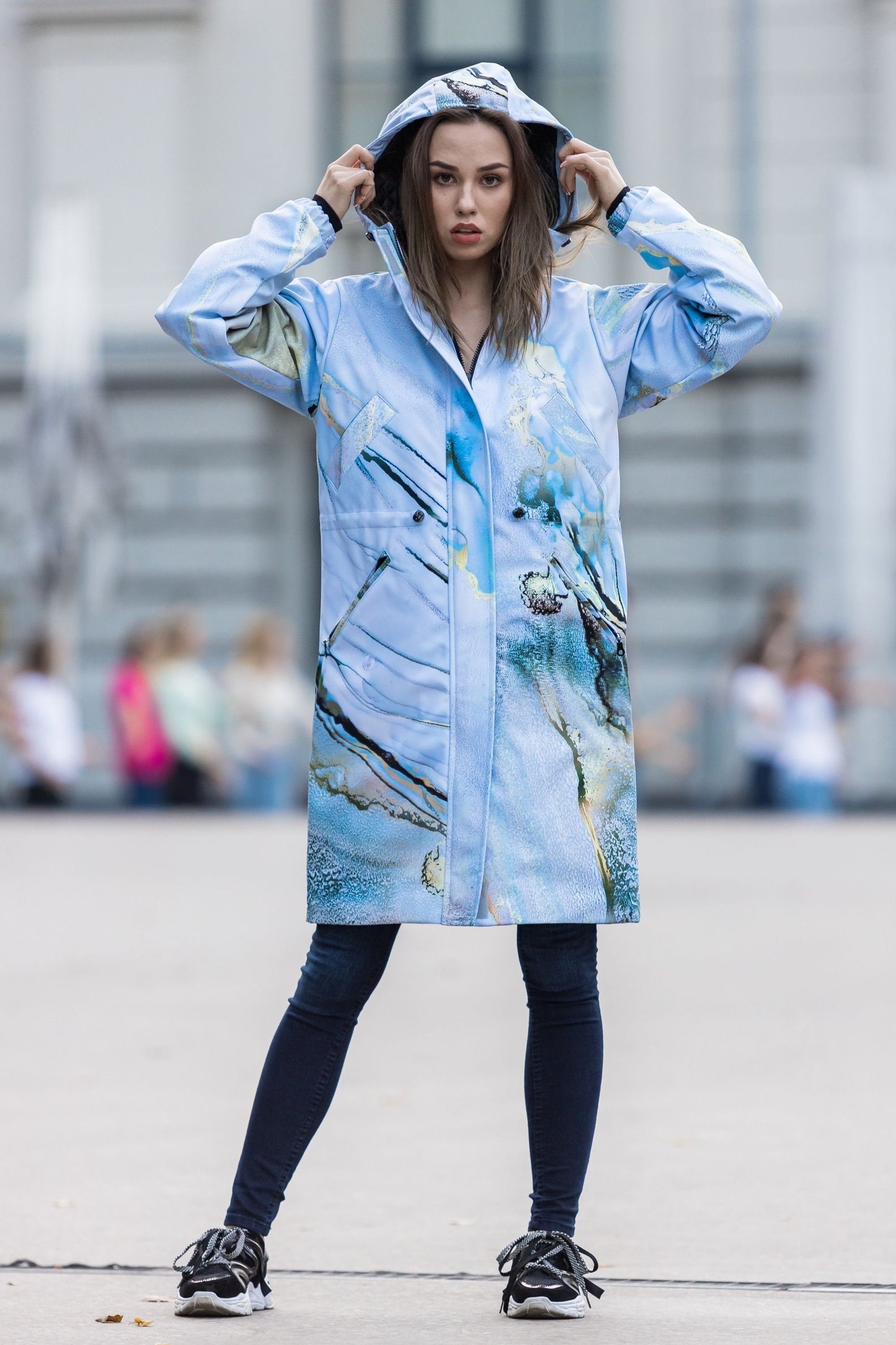 Hellblauer Parka, Winterjacke, Damen Regenmantel