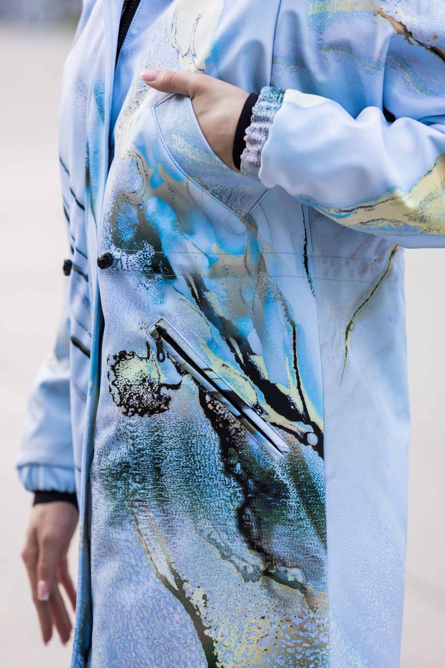 Softshell-Mantel/Parka mit hellblauem Aufdruck