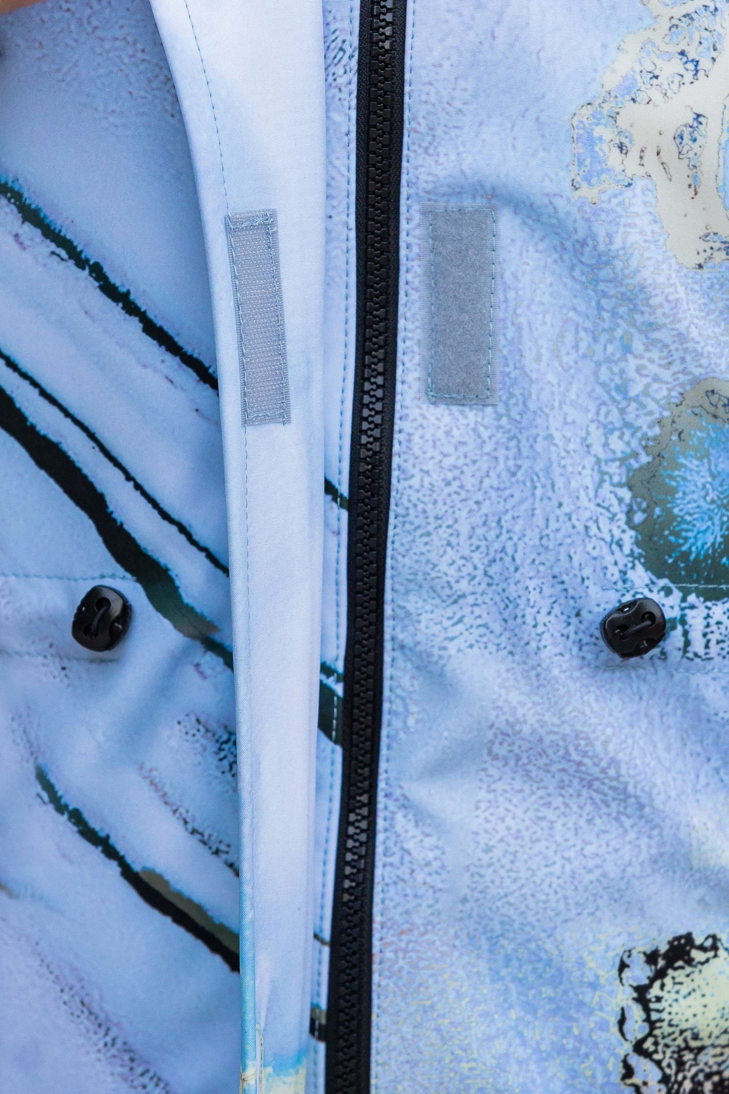 > Die Jacke verfügt über einen Reißverschluss und einen Klettverschluss