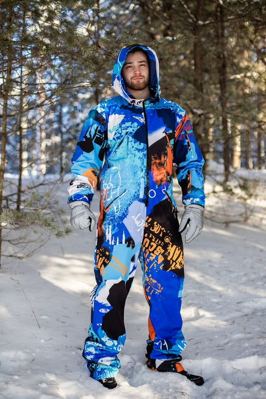 Vīriešu ziemas slēpošanas/snovborda kombinezons zilās krāsās